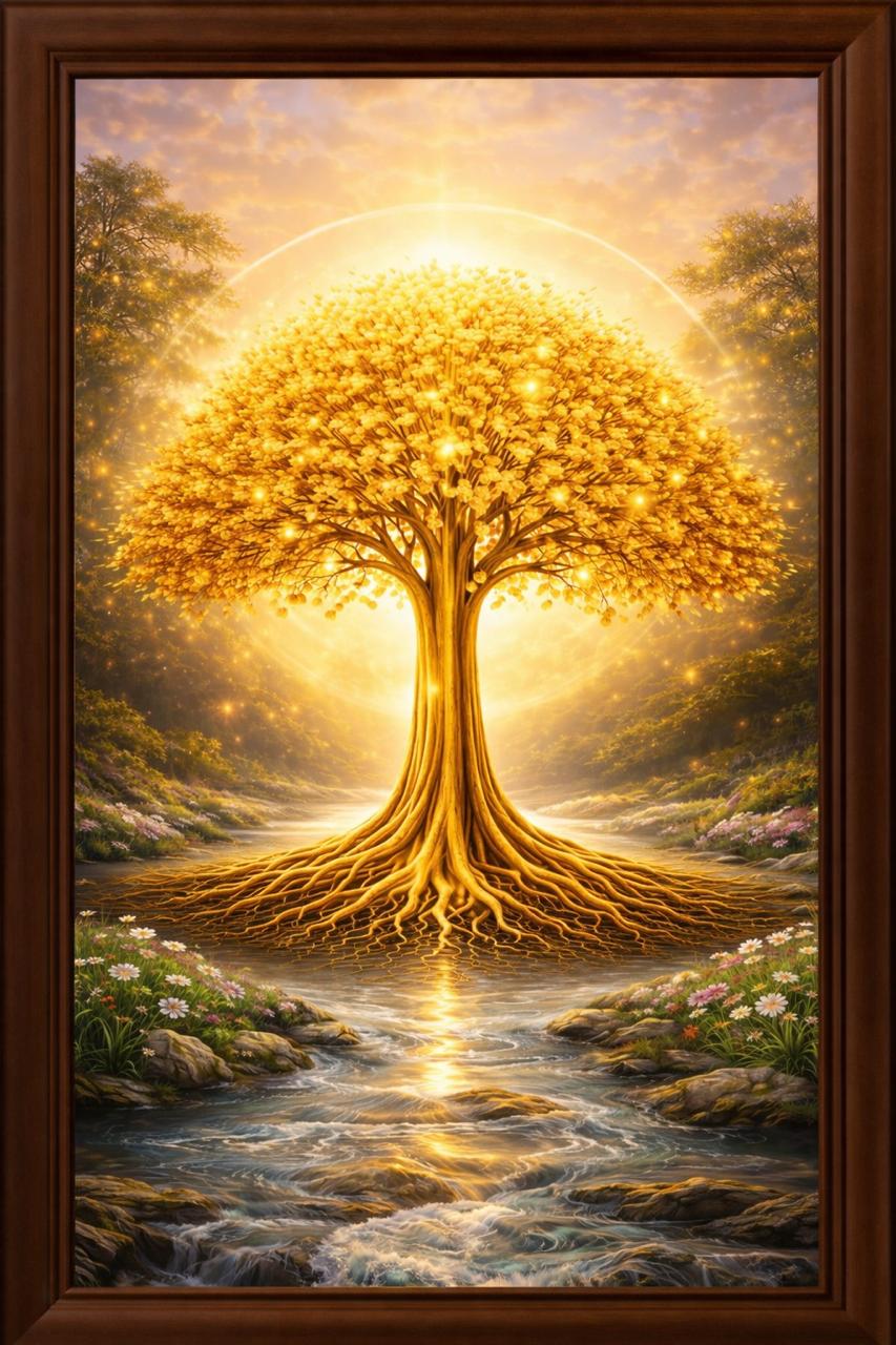 Golden Tree of Life Vastu Wall Painting – Symbol of Wealth, Growth & Abundance